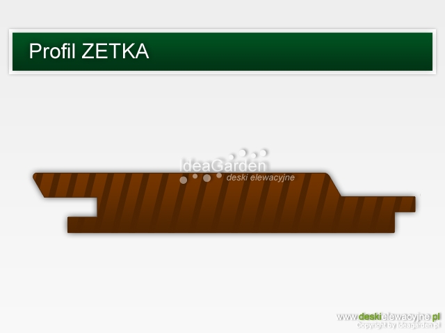 ZETKA jest typowym profilem z rodziny "pióro-wpust", gdzie dwa elementy łączone są dzięki rowkom (wpustom) w krawędzi jednego, w którym umieszcza się występ (pióro) drugiego. Wynikiem tego typu połączenia jest brak przerwy pomiędzy poszczególnymi elementami. Profil ZETKA, w odróżnieniu od profilu PIORO-WPUST, posiada większą fazą. Montaż desek na elewacji zaleca się wykonywać za pomocą nierdzewnych wkrętów przykręcanych od czoła w odstępach nie przekraczających 40 cm.